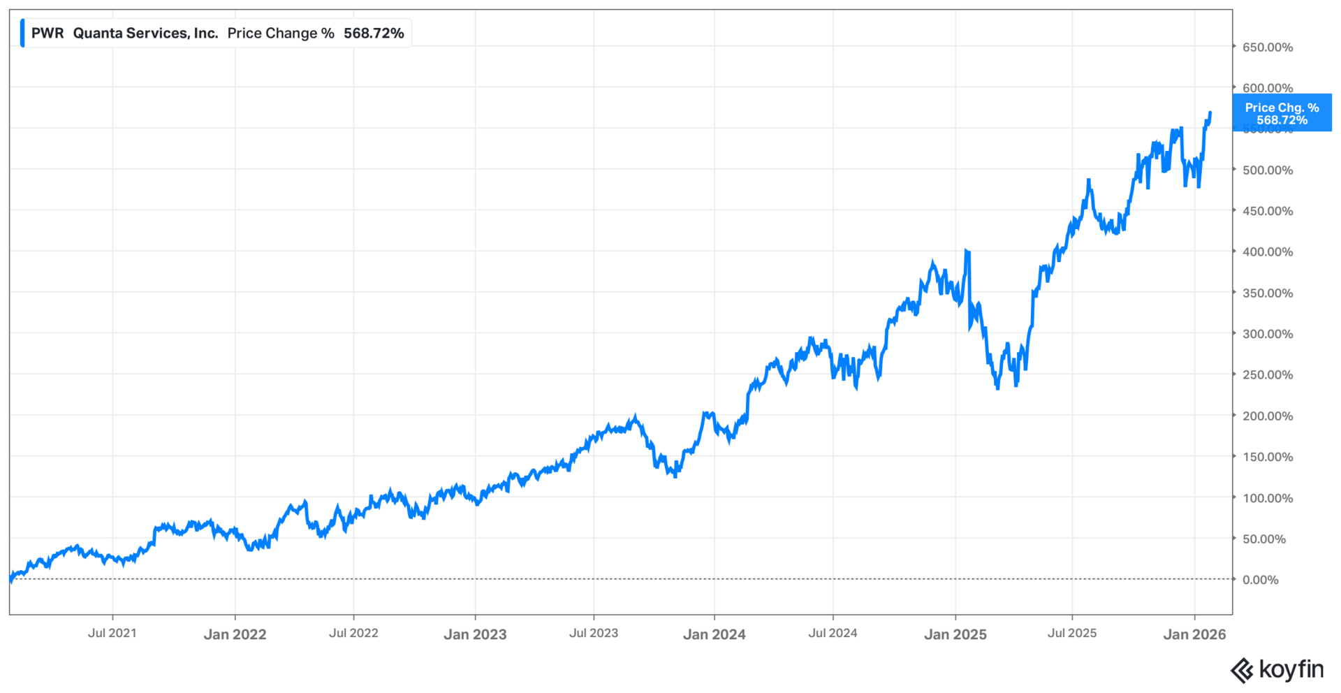$PWR ( ▼ 1.82% ) performance over the past five years